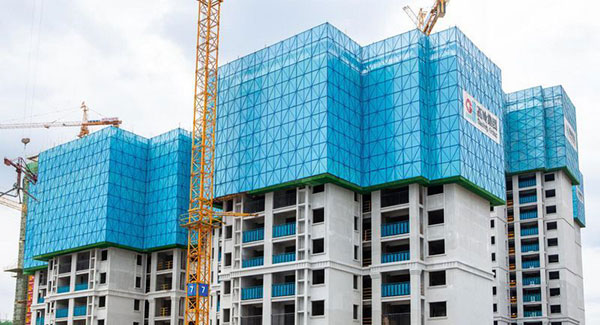 指搭設(shè)一定高度并附著于工程結(jié)構(gòu)上,依靠自身的升降設(shè)備和裝置,可隨工程結(jié)構(gòu)逐層爬升或下降,具有防傾覆、防墜落裝置的外腳手架。