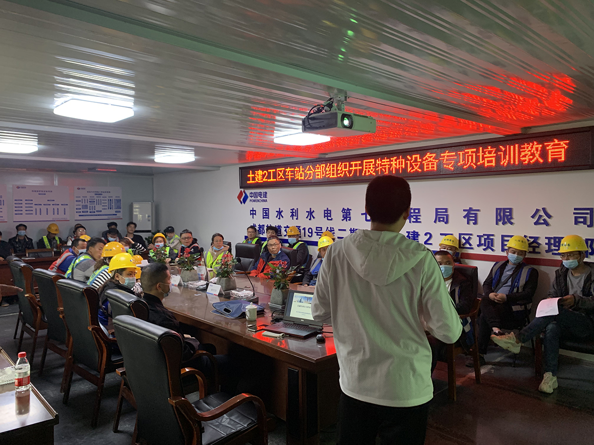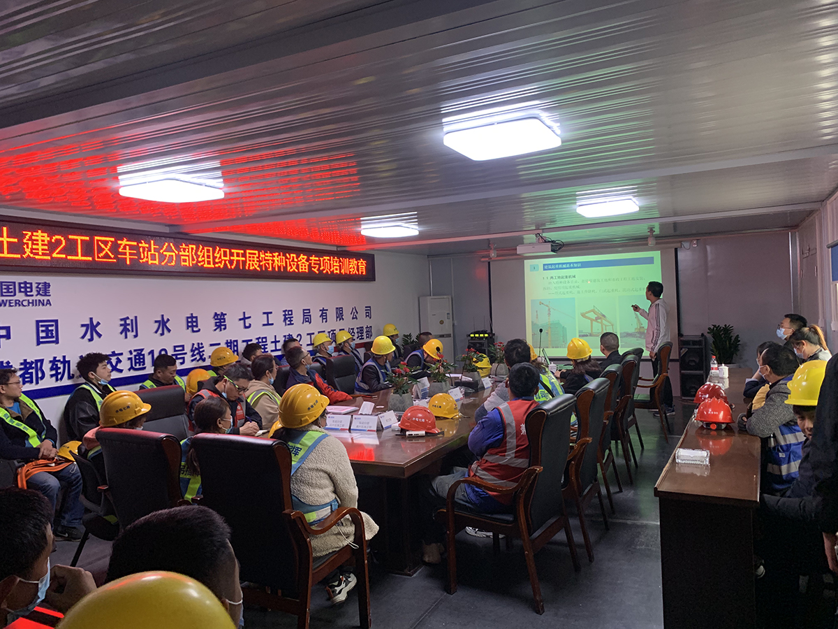 四川升瑞達(dá)機(jī)械設(shè)備檢測(cè)有限公司受中國水利水電第七工程局有限公司委托,派遣技術(shù)部總工在成都軌道交通19號(hào)線二期工程土建2工區(qū)項(xiàng)目組織開展特種設(shè)備專項(xiàng)培訓(xùn)教育。