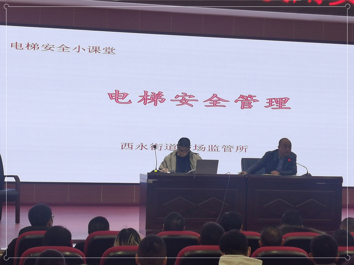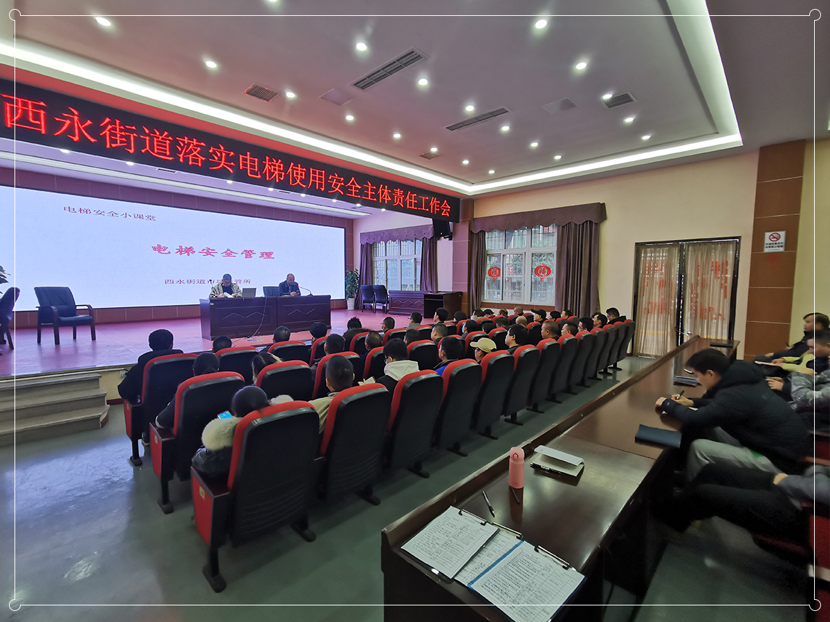 ? ? ? 近日,為認(rèn)真貫徹落實(shí)總局2023年關(guān)于“開展電梯安全筑底行動(dòng)”工作部署和全市“安全乘梯守護(hù)行動(dòng)工作方案”工作要求,結(jié)合轄區(qū)內(nèi)電梯安全運(yùn)行狀況,“西永街道落實(shí)電梯使用安全主體責(zé)任工作會(huì)”在重慶市高新區(qū)西永街道辦事處成功召開,轄區(qū)內(nèi)60余家電梯使用單位、維保單位參會(huì)。?